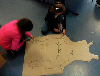 - de janvier à mai : 5h d'ateliers autour de la thématique Apprivoise ton monstre ( travail de création autour de l'ombre et de la silhouette)