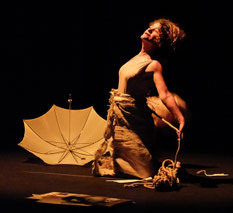 tout est prétexte à jeu : matières – objets – photos – chansons - interviews ... Avec toute la distance requise, la comédienne remodèle un personnage entre deux identités qui ne cherche pas à