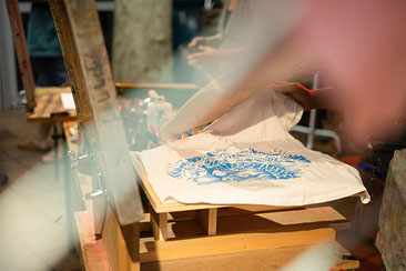 Découvrir la sérigraphie, toucher l’encre du bout des doigts, choisir les couleurs, opter pour un motif, attraper la râcle et la faire glisser, écouter le bruit de l’encre… et repartir avec son support imprimé !